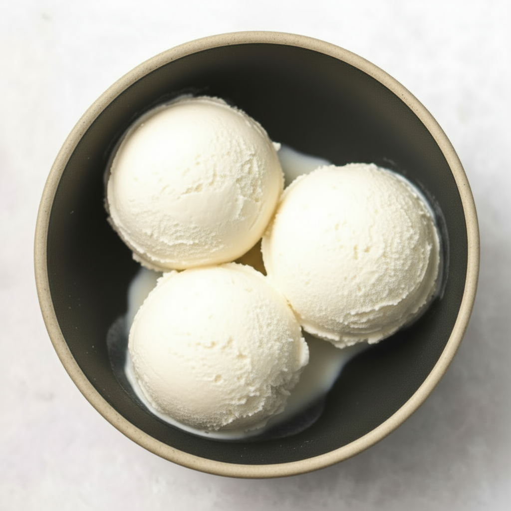 Milk, cream, and sugar . No vanilla, no extras. Just pure, balanced ice cream that’s smooth enough to take on any add-in, from crushed cookies to chocolate, nuts, or fruit ripples.