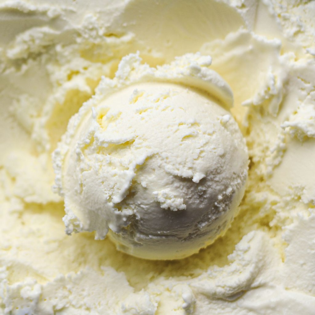 Flavoured with dairy, sugar, and real lemons. Lemon zest is used to infuse the dairy, while lemon juice is added later for zing. The result is a creamy lemon ice cream with a refreshing citrus edge and a lovely, well-rounded ice cream mouthfeel.