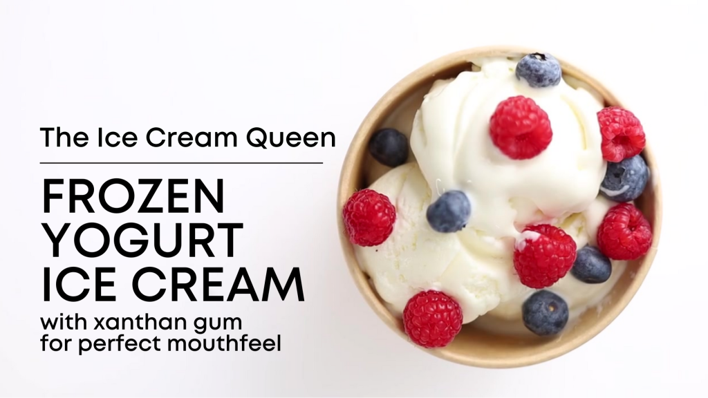 When creating this recipe, I discovered that achieving the perfect frozen yogurt can be challenging. Too much yogurt can make it icy, while increasing the heavy cream to reduce iciness can make the yogurt flavor disappear. To address these issues, I added one teaspoon of xanthan gum., which has the ability to trap excess water, resulting in a creamy texture without the need for too much heavy cream.