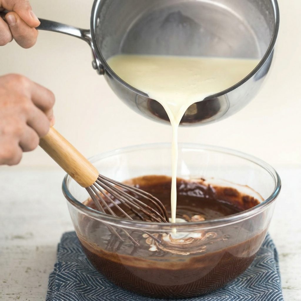 Bring the heavy cream to a boil; remove from the heat and add the cocoa powder, whisking to dissolve.