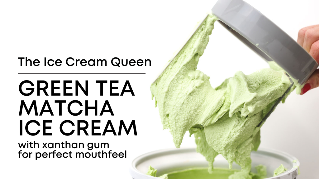 With matcha powder, milk, heavy cream, sugar, and xanthan gum.